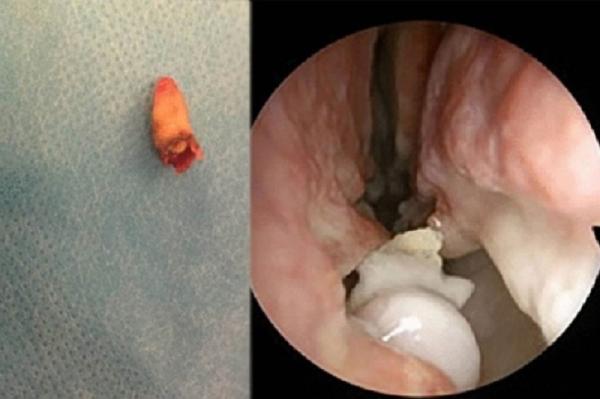 醫生替他檢查鼻子後,發現鼻子彎曲到一邊,鼻腔內更有腫塊,最初懷疑是囊腫或腫瘤,因此決定動手術將異物取出,結果發現竟然是一隻牙齒。