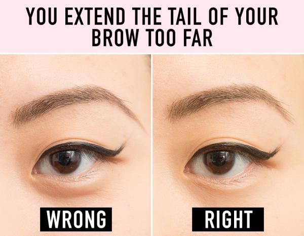 這樣看起來反而沒有精神,也不太自然,整張臉都會變長喔!把眉筆從鼻孔沿對角線傾斜到眼睛,繼續延伸到地方(通常是眉骨)就是眉尾的最佳位置!