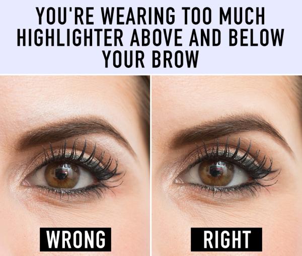 6.不小心在眉毛上下打太多亮