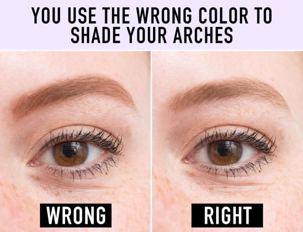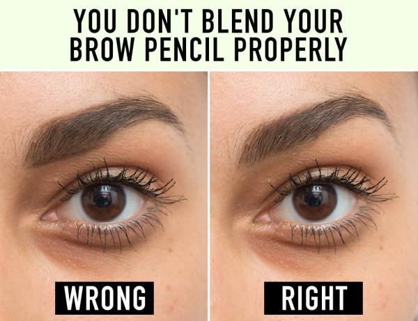 這是個定妝的錯誤示範,如果真的找不到跟自己一模一樣的眉色筆,就選最接近的兩種顏色塗吧!比方說,如果妳是褐色髮女孩,就選咖啡、灰咖啡兩色混合。