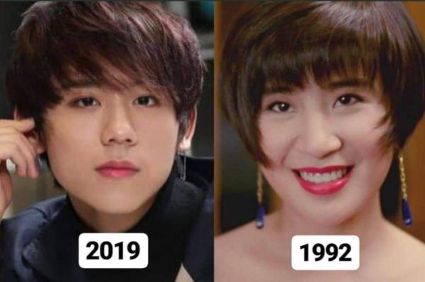 最近有網友發現MIRROR人氣成員姜濤同搞笑天后吳君如擺埋一齊,原來都幾似樣,仲用埋1992年君如喺《家有囍事》嘅劇照嚟做對比,一眼望落去真係有幾分相似,特別係對眼!