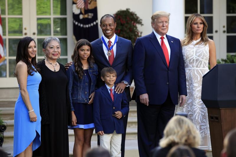 特朗普在白宮玫瑰園主持一項儀式,親手為活士掛上象徵美國平民最高榮譽的勳章,現場觀禮的眾人都起立鼓掌。現年43歲的活士成為第4位獲得這項殊榮的高爾夫球員,也是最年輕的一位。