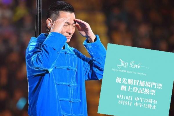 去年劉德華取消7場《My Love》演唱會,香港演唱會補場將於明年2月舉行,現在將進入「網上登記換票」階段。