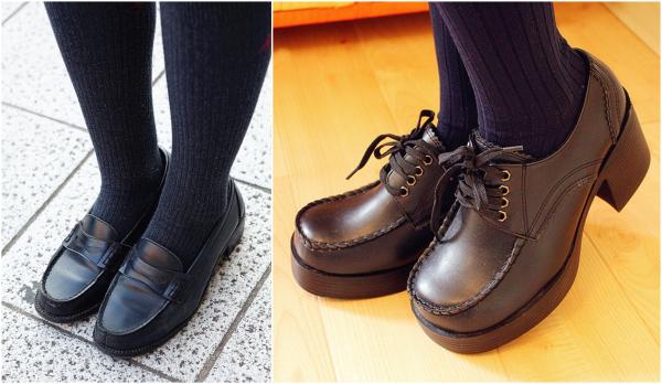 鞋子則多為平底皮鞋,顏色主要是黑色或棕色。當然也有一些女生開始穿起了高跟鞋。