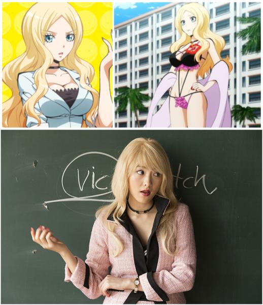 同樣是巨乳的角色,《暗殺教室》真人版的「Bitch」老師就沒那麼還原了,雖然知英的演技還好,但是總覺得缺點什麼……