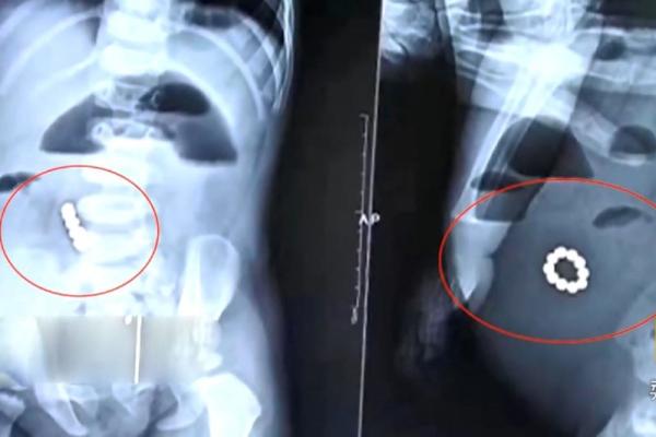 醫生其後決定立刻通過手術,為男嬰取出消化道內的手鏈。但在最後一次會診時,他們驚訝的發現,這手鏈突然散開了,珠子在男嬰的胃和腸道裡不斷變換位置。其後從男嬰家長口中得知,應該是幾個帶有磁性的鐵珠。