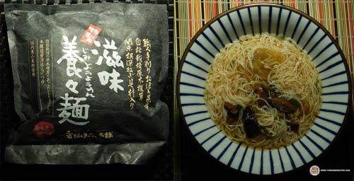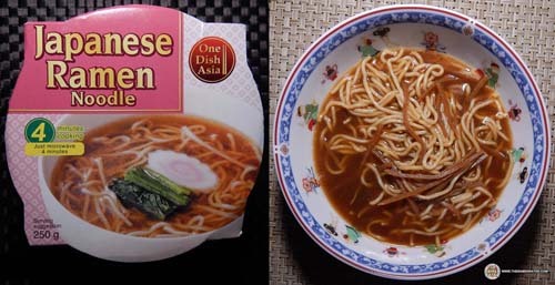 雖然是真空包裝的白麵條,吃起來卻很爛,配料的竹筍也和麵一樣爛。湯的味道是酸的照燒醬,所有的一切加起來,也是相當難以入口。