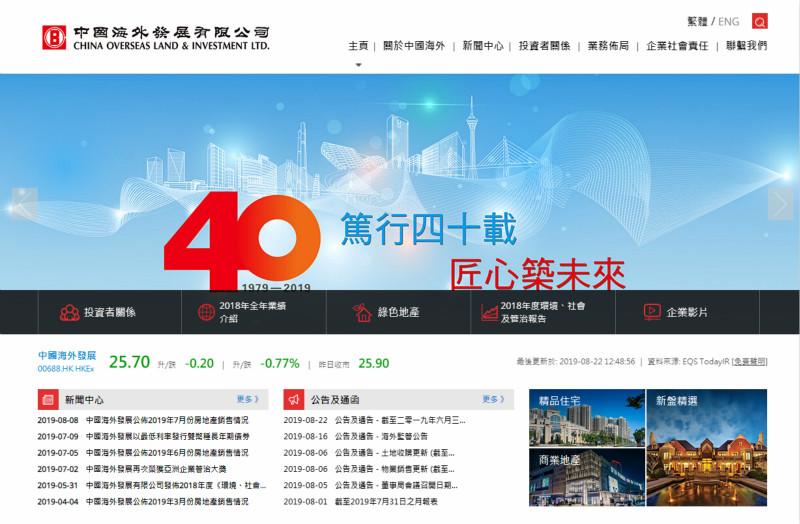 【橙訊】中國海外發展(00688)公布截至6月底止中期業績,溢利249.4億元,按年升7.4%,每股盈利2.28元,按年升7.4%,派中期息45仙,按年增長12.5%。