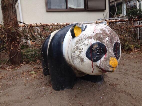近日在網絡上,許多日本網民紛紛上傳自己在公園中見到的「恐怖」熊貓雕塑,有的還只是油漆掉落變破舊,而有的真是出來嚇人啦!
