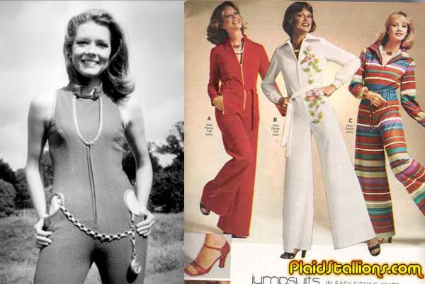 連身褲早期是美國空軍的裝束,經過設計師的改良,連身褲變得實用又好看。70年代的連身褲偏向誇張花俏的風格。
