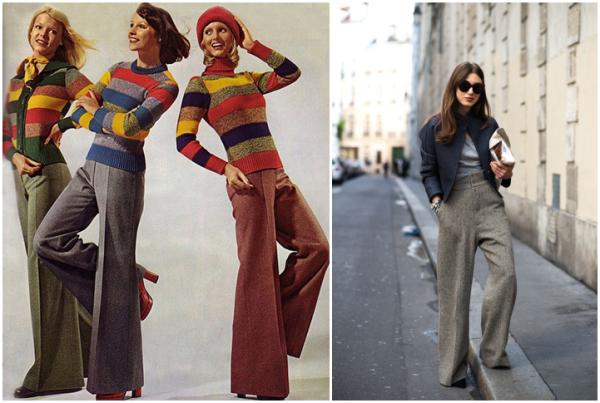 怎麼樣?有冇覺得很相似?闊腿褲的原型就是70年代流行的那種「喇叭褲」,延續了60年代的嬉皮風格,色彩簡單但是鮮艷,有種五彩繽紛的感覺。
