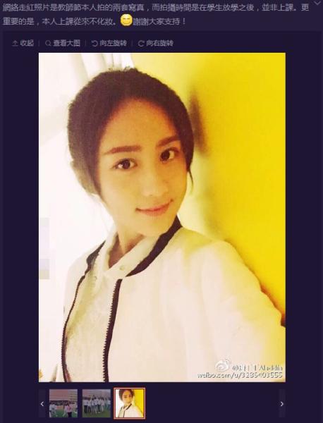 有更靚的老師在學校教書,小男生們上課應該都不會吵了吧!她的微博也非常有人氣哦!