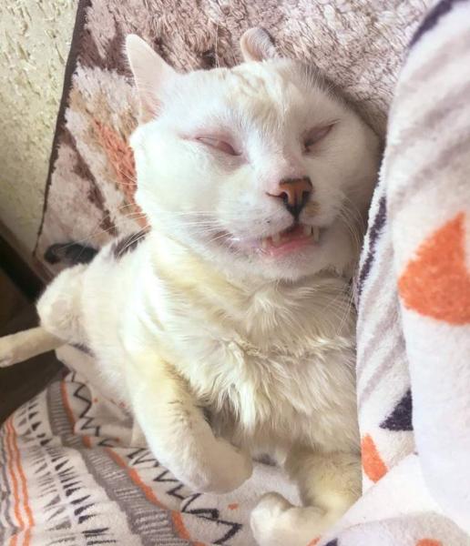 其實這隻藍眼白貓可說是最有名。來自日本的瀨津匠平日可愛乖巧的樣子惹人憐愛,但睡覺卻醜得變了別的貓咪一樣。翻白眼、吐舌頭等等的奇怪姿態盡現。