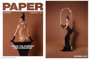 誰說女人一定要身形瘦削才能成名, Kim Kardashian就是一個成功的反證,從前的她身材均勻窈窕都只能當名人身邊的二線角色,而生產後的她身形和名氣都起了急劇的變化,產後她成功在6個月減去50磅,但那個橫張肥臀都揮之不去而且日益發達,Kim從前只有正面才吸引傳媒,但她那結實圓渾得有點超現實的臀部,竟意外地都成為媒體談論焦,這次為《PAPER MAGAZINE》拍的封面照足以奠定其「影後」地位。