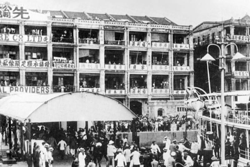 1920年代的上環碼頭。注意圖左的先施公司為1900年在香港創辦的首家華資百貨商店 圖:三聯書店提供