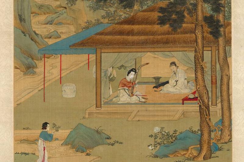仇珠:《摹仇英彈箜篌圖》,仇珠為仇英之女。華特斯藝術博物館藏 圖:LACMA