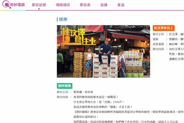 杜文澤將主持飲食節目,介紹香港的「劣食」,形容為「史上最口沒遮攔」的飲食節目。「試咪王」盧海鵬率令一眾前新聞小花趙海珠、林小珍等揭露港人特質;方健儀和衛詩雅更參與旅遊節目《帶阿媽去旅行》,為媽媽度身訂造行程,遊歷不丹和泰國。