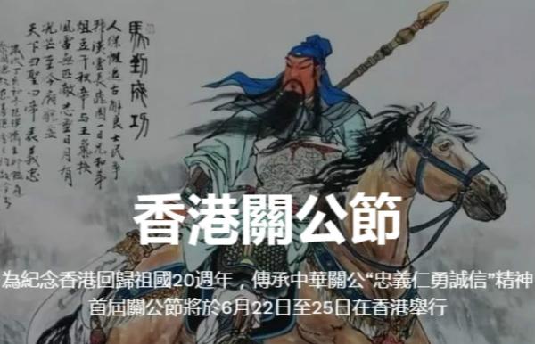 【橙訊】為慶祝回歸20週年,香港山西商會將於本月22日至25日舉行首個「關公節」,並特地在山西訂製一尊20尺高全港最高的關公像,預備擺放在遮打花園,以供市民學習關公忠勇仁義的精神。同時,在開幕禮當日更找來國家級演員武凌雲主演關公名劇助慶。