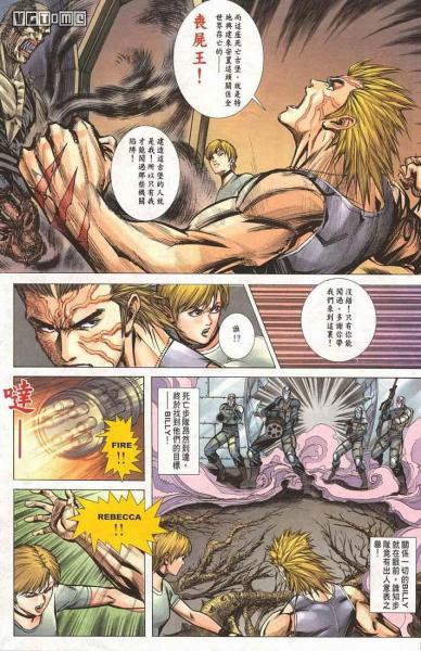 然而劇情,實在是……除了開頭是你熟悉的生化危機外,剩下的實在不好用語言形容,劇情暴走的天馬行空(這也是港漫的一個通病了,也不知道授權的CAPCOM看不看的啊)隨便放一圖讓大家感受一下……