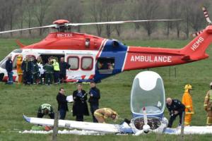 飛機冒出濃煙,機身損毀,兩人被困機艙,均告昏迷。救援人員近一小時趕至,救出兩人後,以直升機送院,兩人胸背部受傷及骨折,均告昏迷,情況危殆。