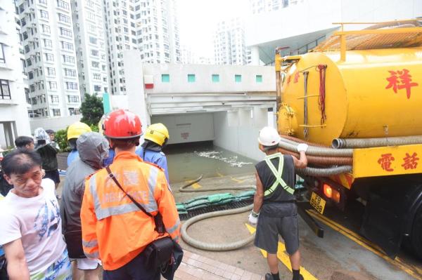 另外,港島柴灣杏花邨下午4時55分,有市民報警稱被水淹浸到地庫停車場,懷疑有3人失蹤。警方及消防到場調查,蛙入內搜索。最新消息指3人已尋回。
