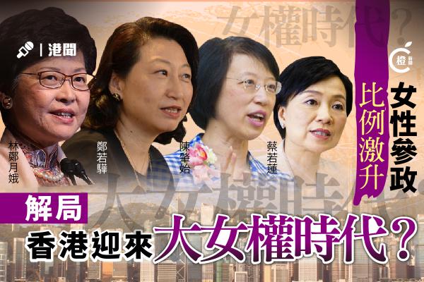 過去十年,香港女性參與政治事務的範圍擴大,根據香港統計處去年公佈的《香港的女性及男性-主要統計數字(2017年版)》顯示,在參與公共事務的男女分佈上,女首長級公務員的數目由2006年的330位,上升至2016年的455位,大增三成半。女高官與男高官的比例亦由06年1比2.5,縮窄至16年的1比1.89。在目前港府各決策局的常任秘書長中,女性官員比例也高達一半。