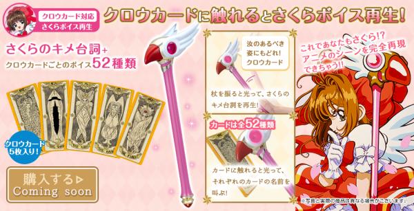 《百變小櫻》將推出新周邊商品,最大的特色是商品都有聲!只要將封印之杖和MAGIC咭感應,就會有小櫻呼喊牌名的聲音,基路仔竟然也會講20句語音!