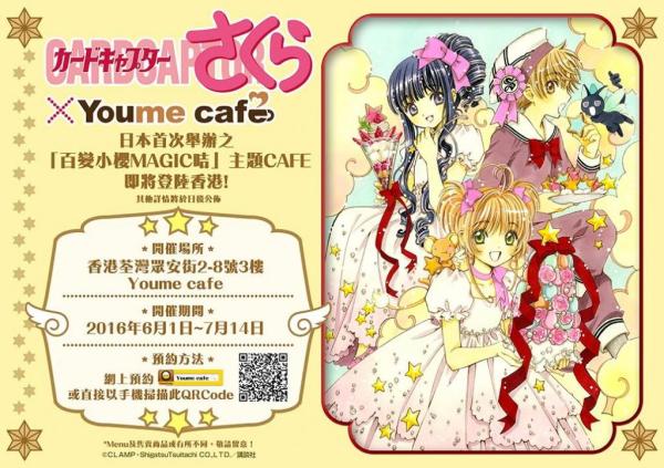香港Youme cafe將以「百變小櫻MAGIC CARD」為合作主題,推出期間限定Cafe。現在尚未得知香港版的餐單及售賣商品,可以先參考一下日本版!