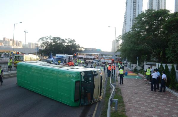 司機連同6男6女乘客,共13人受傷,全部清醒,消防及救護員到場為傷者分流,部分人送往威爾斯醫院治理。