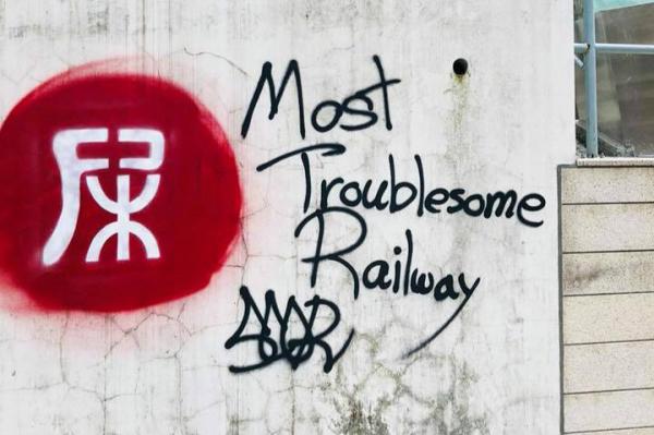 有網民在fb群組「西環變幻時」上載相片,相中一幅牆上畫有塗鴉,一個類似港鐵的標誌上被加上「尸」,仿如一個「屎」字。此外,亦有人在旁用英文寫下「Most Troublesome Railway (最麻煩的鐵路)」。