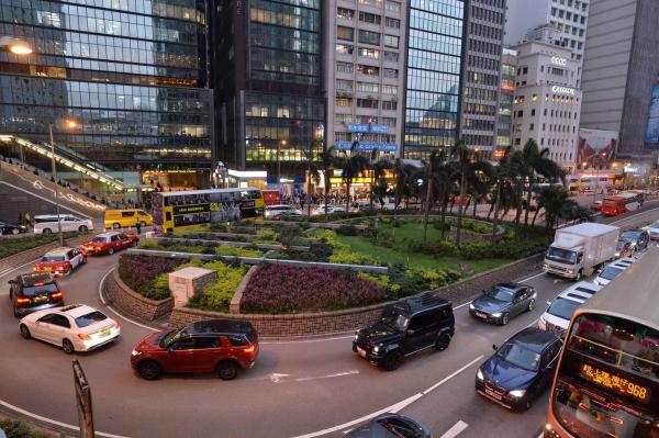 2.在林士街天橋東行方向有另一「樽頸位」,由於繞道通車後,上環橋面直往干諾道中的兩條行車線(中線和快線)已封閉,司機如需東行往金鐘,須靠左落橋、繞經康樂廣場才可折返干諾道中,期間有多個燈位,令車流不順暢。