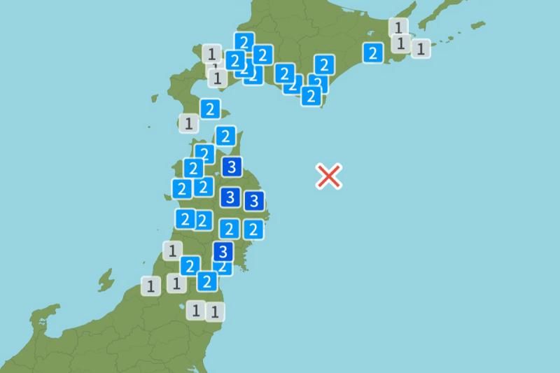 日本氣象廳錄得的地震強度為6級,震源深度為10公里,青森縣、岩手縣、宮城縣的地震震度則達到3級。