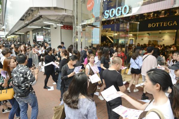 銅鑼灣及尖沙嘴的崇光百貨舉行感謝周年慶(SOGO Thankful Week 2019),由今日(10日)起至26日舉行,多個商戶推出限定優惠,貨品包括時裝、護膚化妝品、家電及日用品等,吸引不少人到場「血拼」。由於現場所有商品先到先得,為求「心頭好」,部分人在商場開門前已排隊。