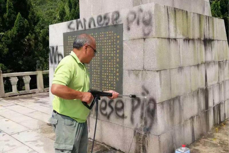 【橙訊】反修例風波持續發酵,有示威者在明日「烈士紀念日」前夕,塗污斬竹灣抗日烈士紀念碑。幸有志願者今晨前往清潔並敬獻花束。