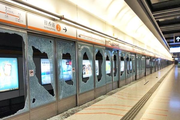 【橙訊】多次被示威者針對破壞的港鐵東涌站,月台幕門昨晚在車站關閉後遭全部打爆,客務中心玻璃毀爛,站內其他設施,如大堂玻璃和售票機等也受破壞。