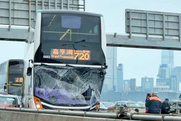 現瑒所見,撞向路壆的新巴車頭擋風玻璃碎裂,路中的防撞欄被撞至變形。意外後,巴士乘客下車站於馬路旁等候救援。
