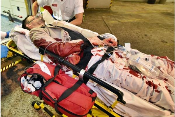 【橙訊】一名25歲男子昨晚在旺角西洋菜南街兆萬中心對開,懷疑被4名男子斬傷,身體多處受傷,滿身鮮血,半昏迷送院搶救,現場留下大攤血跡。刀手行兇後登上一輛私家車逃去。