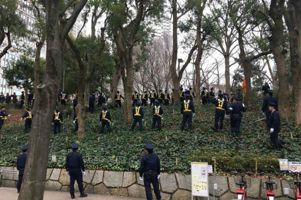 東京當局出動大批警員現場維持持續,不過,示威隊伍還是遇到了與其遊行人數相若的日本右翼分子,日本右翼分子手持軍國主義的「旭日旗」,據日本媒體報道,雙方期間發生衝突,華人的示威遊行遇到幹擾。