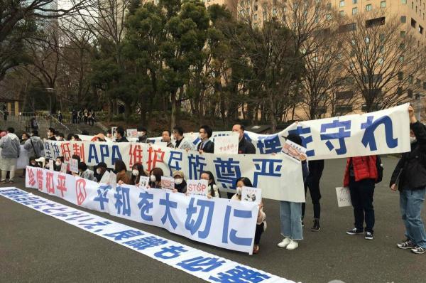 日本連鎖酒店APA酒店在旗下酒店客房放置右翼書籍供客人免費觀看,事件近期引起包括中國以及韓國在內的反對。據內地環球網報道,東京時間14時40分,華人開始按計劃沿路遊行。他們打出了寫有「堅決抵制APA,維護民族尊嚴」「儘管言論自由,也需要良知」等字樣的抗議標語。據悉,遊行途經一家APA酒店。
