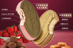 Häagen-Dazs搜羅了人氣的日版期間限定雪糕批口味:「士多啤梨松露朱古力脆皮雪糕三明治」、「香濃焦糖脆皮雪糕三明治」。