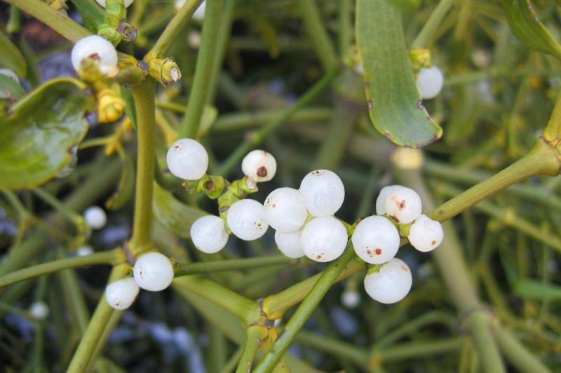 刺死Baldr的槲寄生應該是分佈歐洲及亞洲北部之白果槲寄生。現時香港植物誌載本地槲寄生科有三種,只有瘤果槲寄生果實是白色的,觀其葉,如果你是愛神Frigg,似乎也會感其幼弱,料無力傷人而略過。本地另有桑寄生科共五種,加上檀香科寄生藤,總共九種,繁洐都是靠雀鳥啄食其果肉時,把種子黏住鳥喙,雀鳥不適,飛到寄主樹上擦嘴,把種子播在寄主上。香樂思說槲寄生在香港最常見的兩個品種,是瘤果槲寄生和東方槲寄生,寄生於芸香科植物如柚子和九里香身上,我卻只曾在在荒蕪無路的海背嶺南端至龜頭嶺頂中間曾見一株。中國的槲寄生品種雖多,只有用來做藥的,限於國情,沒有一種用來索吻,但香港本是華洋雜處,中西合壁,左右逢源福地,瘤果槲寄生被用來索吻之後再作藥用,也不是沒可能之事。