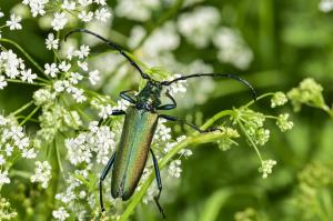 《香港天牛》作者饒戈指,天牛幼蟲排便孔流出發酵的樹液,吸引各種蠅蜂蝶蛾和甲蟲到訪,其開闢的通道,讓各種植食昆蟲、腐食昆蟲、寄生性昆蟲和捕食性昆蟲加入,形成多樣化小生境,所以「從生態角度而言,不應簡單地將天牛幼蟲說成是破壞者。」
