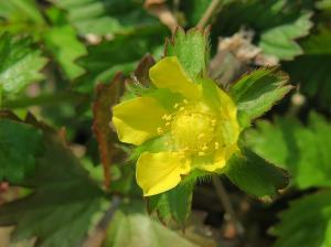 蛇莓屬多年生草本植物。莖有柔毛。複葉,葉片呈倒卵形,邊緣有鈍鋸齒。花單生於葉腋,小黃花長五至十毫米。花托在果期膨大,變成鮮紅色,有光澤,直徑僅十至二十毫米。從前人們把蛇莓搗爛成泥,以冷開水浸泡並添白糖調味,用來治療咽喉腫痛及痢疾。