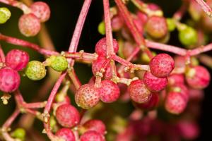 夏秋之間長出淡黃色小花,秋冬果實成熟時會變成紫紅色。串串小果掛在枝頭上,在淺藍天空襯托下顯得艷麗非常。果實表面佈有油點,分泌香辛味道,試過「手多多」把油份塗抹嘴唇上,竟有麻灼感覺久久不散。根和果是民間草藥,有祛風去濕、行氣化痰、止痛等功效。
