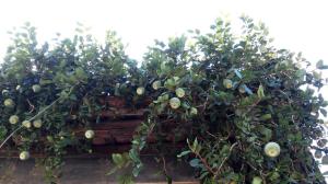 走過一條小村,田畦旁有一行只有一層高的古式舊房子,起碼有五六十年的歷史吧。我抬頭,看見攀緣植物的葉子繞滿屋頂,更有一個個形狀獨特的果實掛在植株上,噯!那是什麼呢?原來是桑科榕屬的薜荔。