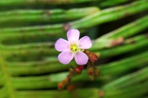 我們走下數百梯級來到海邊,在幾塊大石上發現某種在園藝店也能見到的有趣植物,那是茅膏菜科的寬苞茅膏菜(也常稱小毛氈苔)。正值花期的它抽出幼長花柄;可愛的粉紅色五瓣小花在太陽底下盛開著。