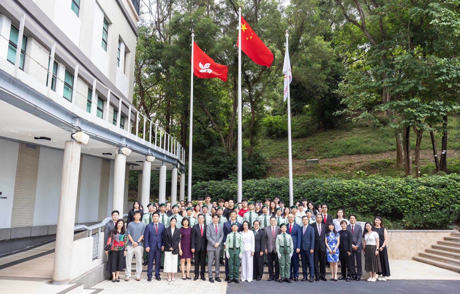 嶺南大學今日上午舉行升旗儀式,由嶺大國旗護衛隊負責進行。中華人民共和國國旗、香港特別行政區區旗及嶺大校旗在國歌奏唱中升起。嶺大校董會主席姚祖輝、校董會成員梁嘉麗及沈慧林、署理校長陳漢夫、校長特別顧問(公共事務)暨傳訊及公共事務處處長及歷史系教授劉智鵬,連同一眾教職員及學生等出席升旗禮。