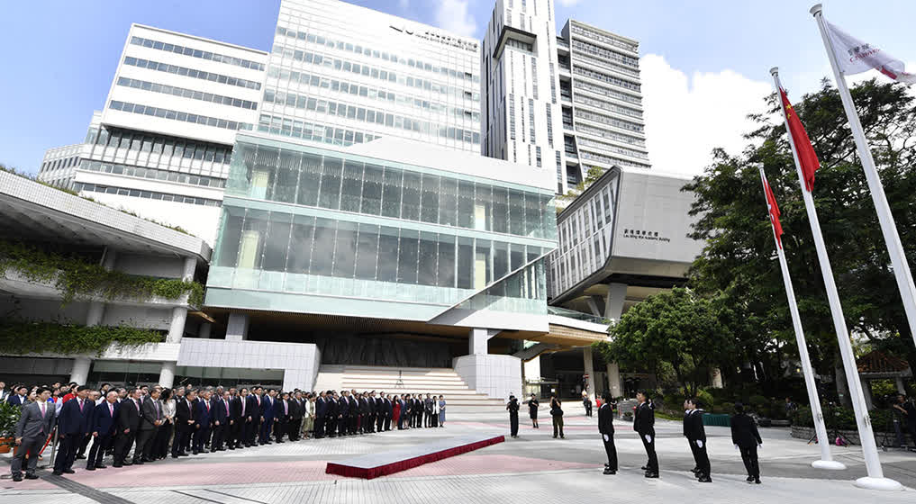 香港城市大學在城大廣場舉行國慶升旗儀式,教育局副局長施俊輝、城大校董會副監督鍾瑞明、主席魏名成(明德)、副主席蔣瑞福與教職員、學生、校友等約200位大學成員出席儀式。升旗儀式由城大組成的護旗隊負責。城大指,一直積極響應政府推動「留學香港」品牌,建設香港成為國際專上教育樞紐,將繼續致力於拓展國際聯繫,為學生建立「背靠祖國、立足香港、面向世界」的多元學習環境,裝備他們成為具備全球視野的未來領袖。
