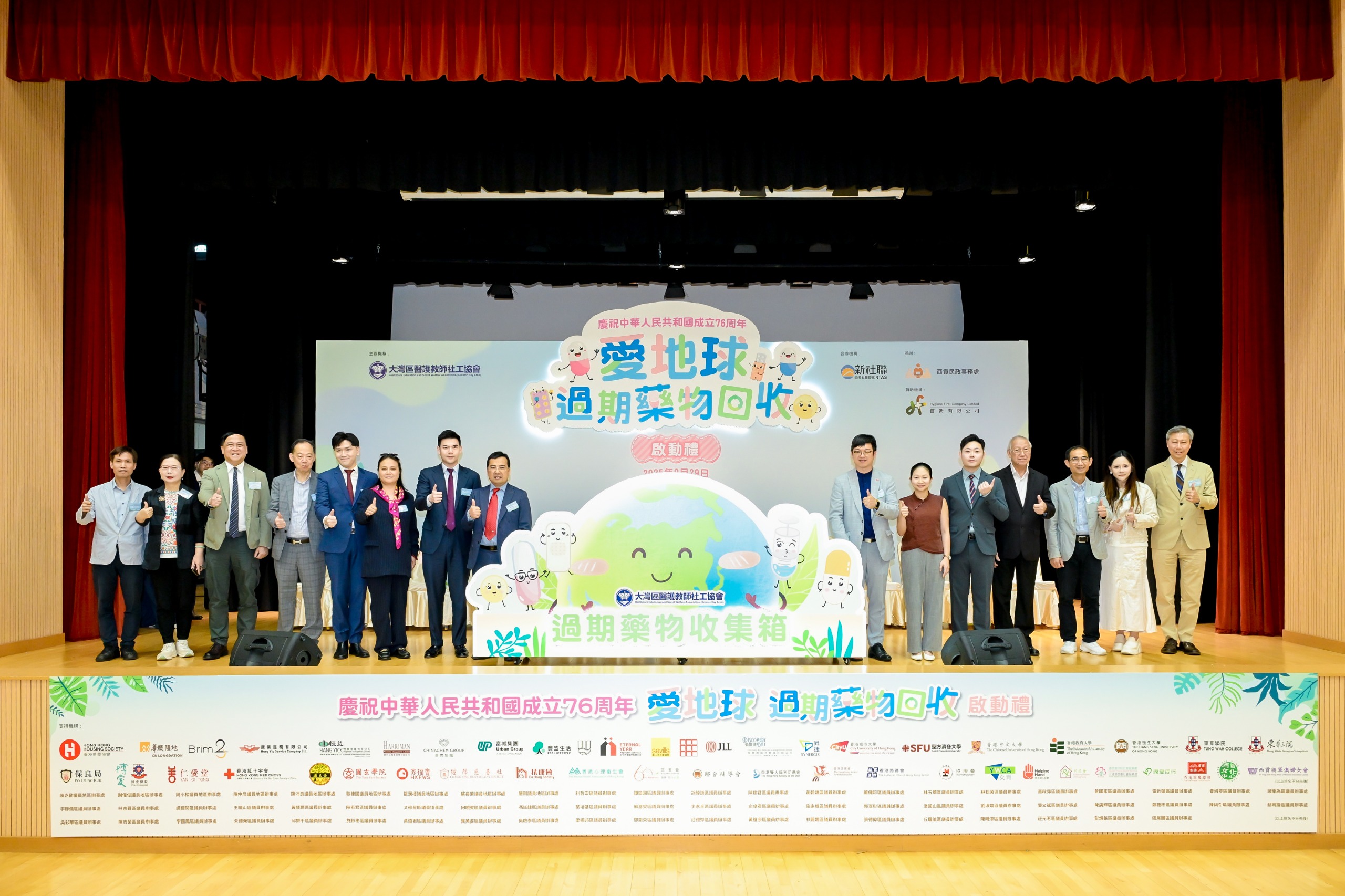 【橙訊】9月29日,由大灣區醫護教師社工協會主辦、新界社團聯會合辦的「愛地球 過期藥物回收」活動於在西貢賽馬會大會堂舉行,勞工及福利局副局長何啟明,中央政府駐港聯絡辦新界工作部處長趙克祥,西貢民政事務專員馬瓊芬,香港中華總商會永遠榮譽會長袁武,新界社團聯會理事長譚鎮國,大灣區醫護教師社工協會主席舒鈗昊、會長黃祉穎、監事會主席黃浩誠等出席主禮。活動為期三個月,獲得110個不同界別的機構響應,將在全港18區設置約2000個藥物回收箱。